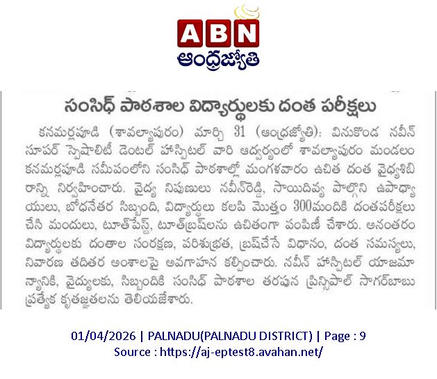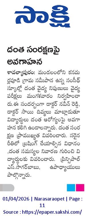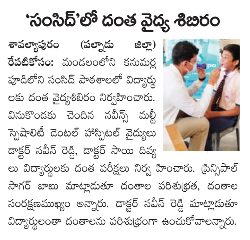 Successful Conduct of Dental Camp at Samsidh School, Vinukonda