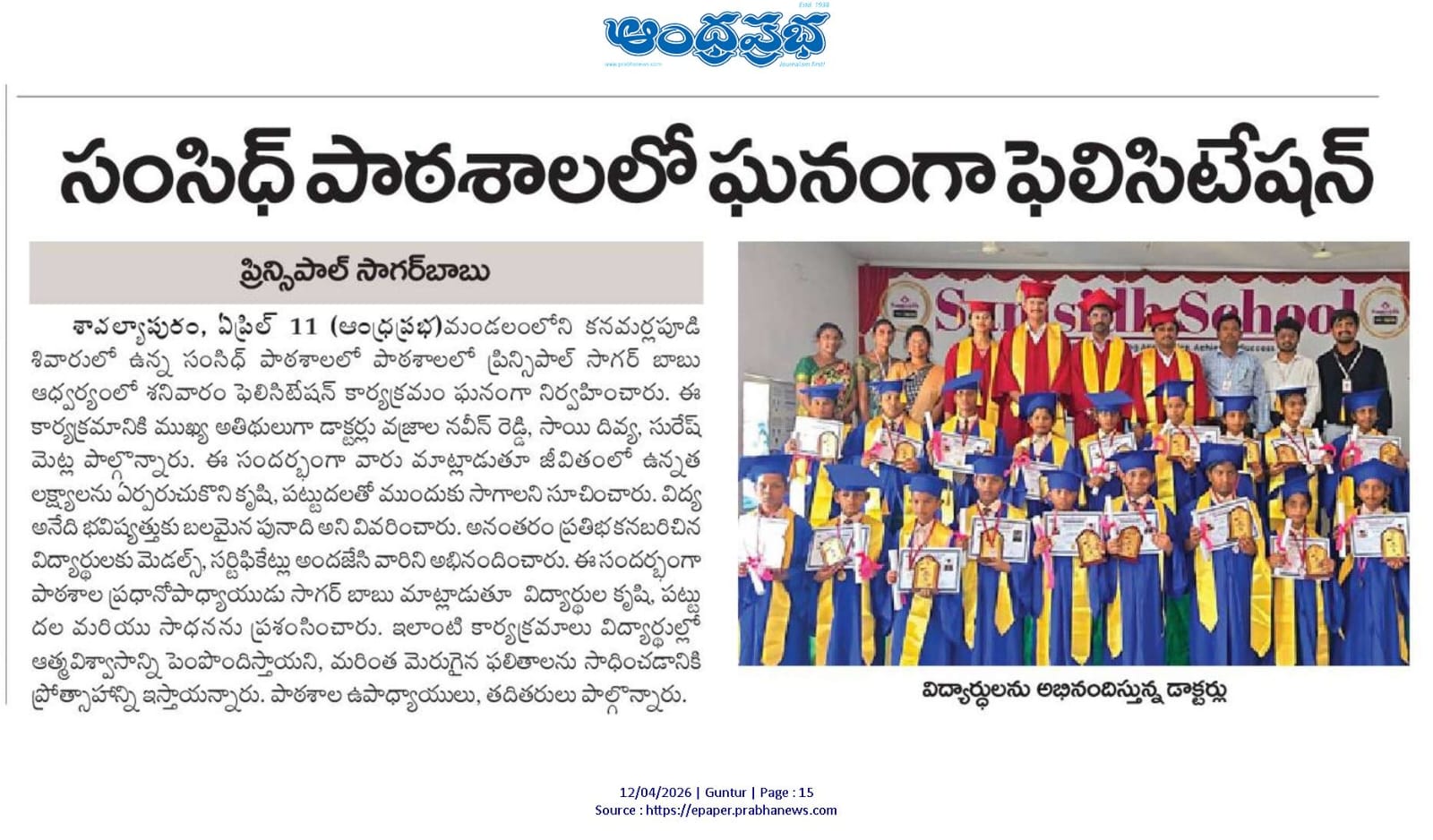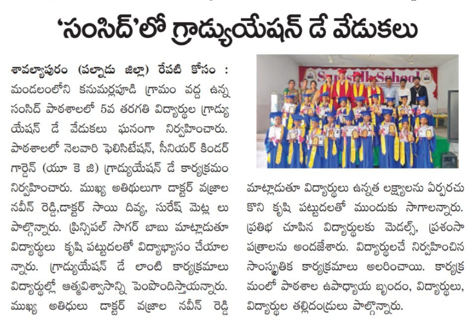 Grand Celebration of Graduation Day & Monthly Felicitation at Samsidh School, Vinukonda