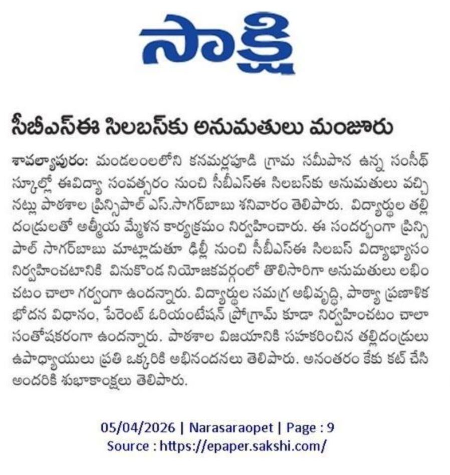 Samsidh School, Kanumarlapudi Achieves CBSE Affiliation – A Proud Milestone
